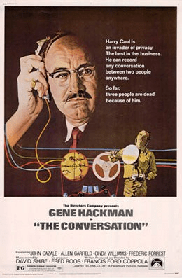 The Conversation (1974) was directed by Francis Ford Coppola at the peak of his critical and popular acclaim, winning the Palme d’Or at Cannes (in the same year, The Godfather Part II, also directed by Coppola, won Best Picture at the Oscars) – The Conversation is a lesson to all modern film-makers as it focuses on gradual revelations, inwardly on small details, not on expansive action or explosions, while retaining a broad cinematic ambience: it is mesmeric as a result – a surveillance expert (Gene Hackman) has been hired to watch a man and woman, possibly cheating lovers, with the woman the wife of a rich man who leads a big business: Hackman bugs the lover-conspirators as they have a conversation in a noisy public place; and then he struggles to put the conversation together afterwards, as snatches of conversation wander into electronic burble as the targets go out of range of one microphone and into another or their voices are drowned-out by other noises – the scene he has surveilled is repeated throughout the film, from different viewpoints and ear-wigging posts, or with alternate visuals of the ‘lovers’ meeting, as their conversation becomes clearer in snatches as the expert works on it with his technologically advanced recording devices; but each bit of clarity changes the import of the conversation – the scene of the conversation is repeatedly intercut with a linear narrative of the expert interacting with his employer and the ‘lovers’ at their business offices, and his private life (e.g. of Hackman listening to the tapes of the conversation in his deserted workspace, a space which reflects his deserted inner life), a narrative which also becomes more relevant as the conversation is unpicked and things are revealed – it thus becomes a study of perspective and knowledge as disjointed fragments inform and slowly build up, creating a subtle mystery and crypto-detective story that reaches a despairing resolution – but it digs deeper philosophically, into the solipsistic nature of being, with the communications ‘expert’ hearing but not listening or understanding, he sees but does not perceive, unable to grasp the bigger picture as he is locked inside his own personal hang-ups and concerns: he has a withdrawn insular nature, refusing to talk about himself and wary of interaction with others, which means he has no understanding of others (and life in general) and is taken advantage of as a result, despite his paranoid caution (surveillance paranoia is very 1970s, taken to its nth degree here) – Hackman’s understanding of communication is thus mechanical, repetitive not receptive or interpretive; and the film is full of thematic commentary on the limitations of the fixed individual vs an unfathomable broader context, on mis/interpretation, perspective, mis/communication, misunderstood motive (etc) that goes beyond the narrative to being a general thematic meditation on the separated nature of each human being – further, it is one of a very small group of films where the sound design is something to enthuse about, with much credit going to Walter Murch (who also did a chunk of the edit), as the sound of the conversation is brought into focus and pieced together via the best and subtlest sound effects of the time – a fantastic cast and crew is the cherry on top of a profound and very clever film about perception versus reality.